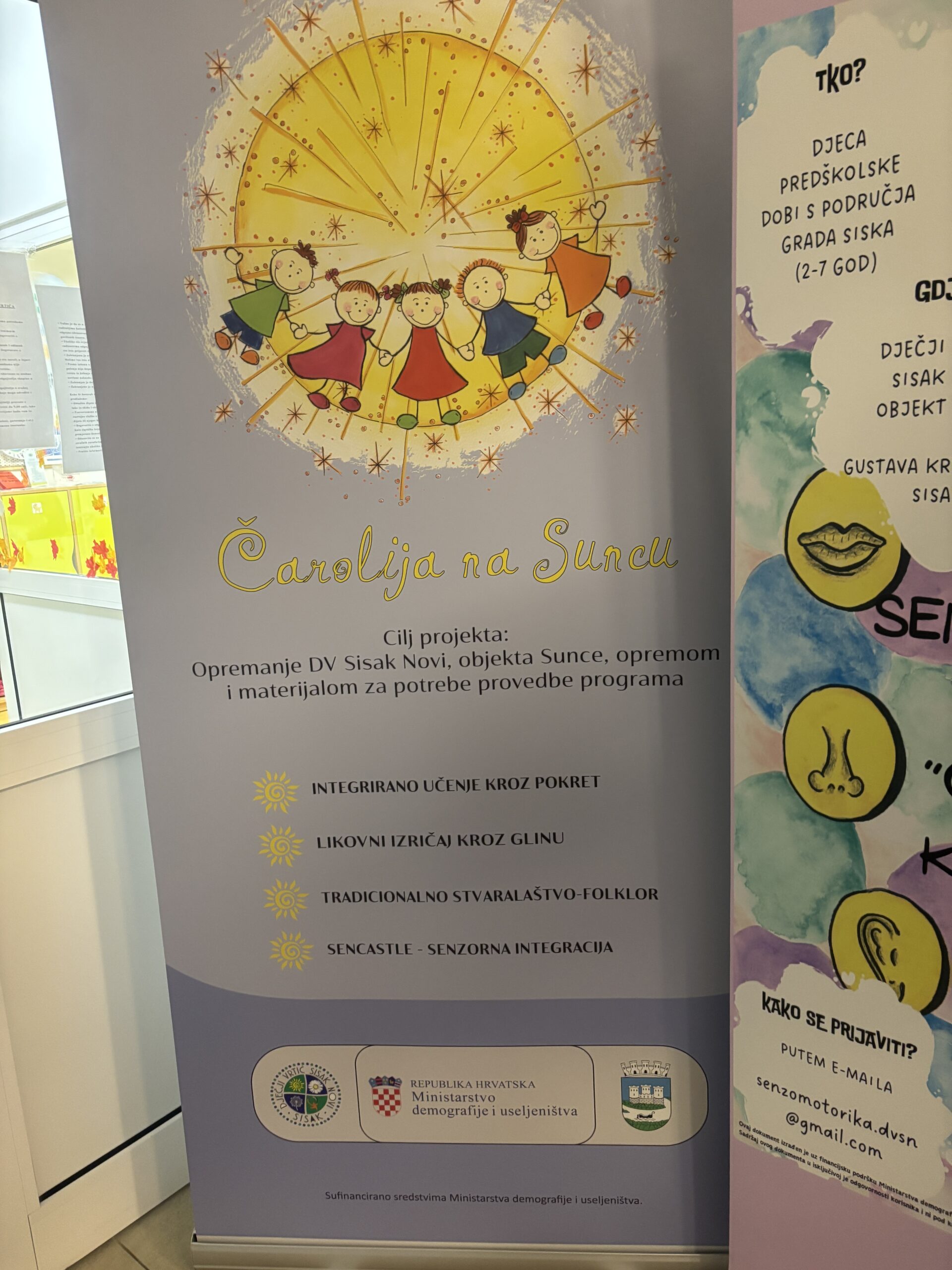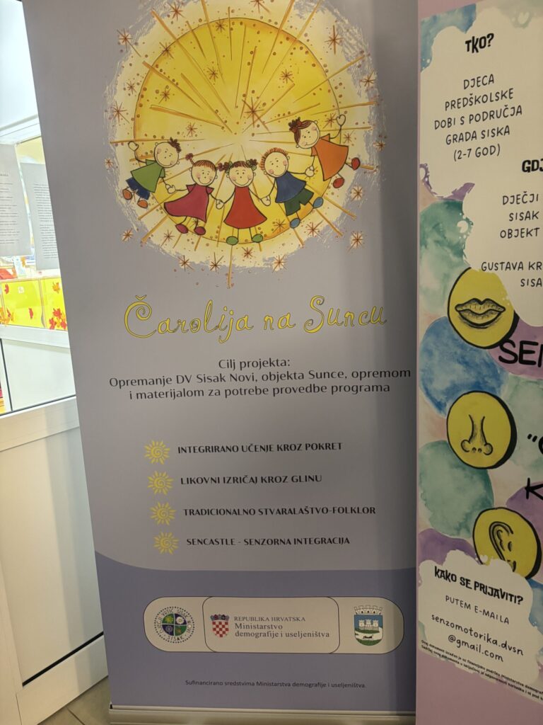 Projektna Produkcija je za projekt “Čarolija na Suncu” grafički oblikovala logotip te izradila roll up banner, trajnu informativnu ploču i plastificirane naljepnice za opremu. Svaki element dizajniran je da bude vizualno privlačan, dugotrajan i prepoznatljiv, kako bi projekt bio profesionalno predstavljen publici.