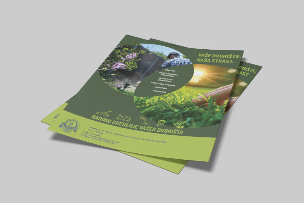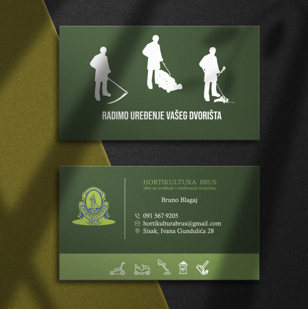 Hortikultura Brus je mali hrvatski obrt sa sjedištem u Sisku, u vlasništvu Brune Blagaj. Osnovan je 2025. godine i specijaliziran je za usluge uređenja krajolika te uzgoj ukrasnog bilja i sadnog materijala. Naš klijent Bruno imao je specifičnu želju da sliku djeda implementira u tradiocionalni logotip. Nakon razgovora, analize izradili smo logotip, knjigu standarda. Naša suradnja nastavila se i u procesu tiska i implementacije logotipa na promotivne materijale.